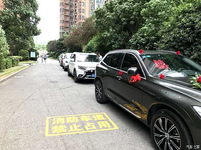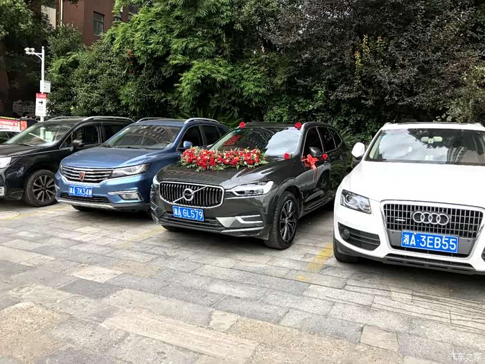 到新郎指定的集合地点啦,先找个位置停车,红欧看起来闪闪发亮