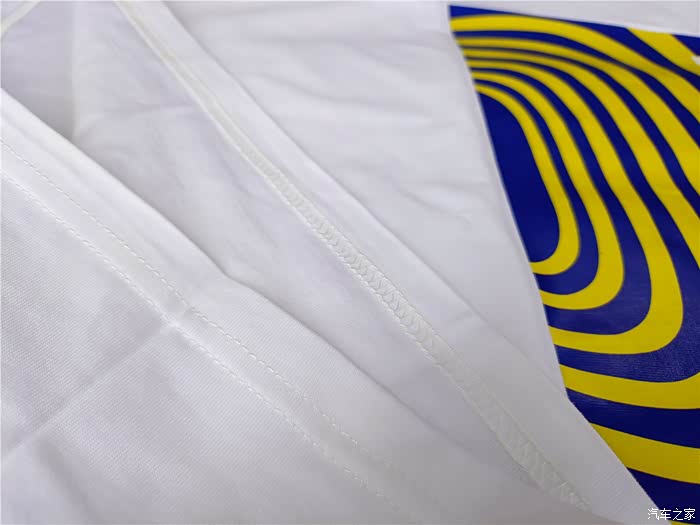 T恤正面中间图案是柠檬黄加海洋蓝相间的光语律动设计,醒目斑马纹理,出场自带高光,让人第一眼就离不开。