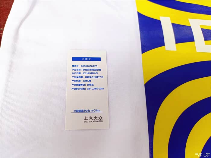 去掉塑料包装,产品合格证一应俱全,这可是100%的XJ棉花哦,手感柔软舒服。