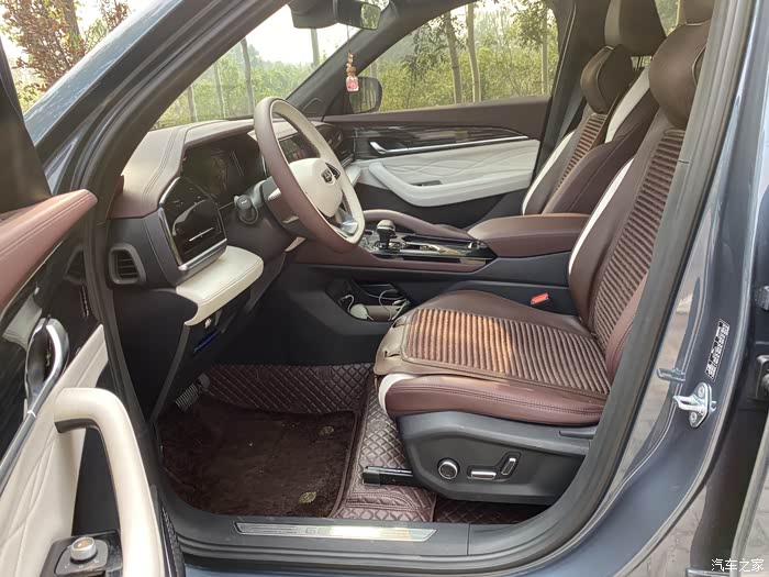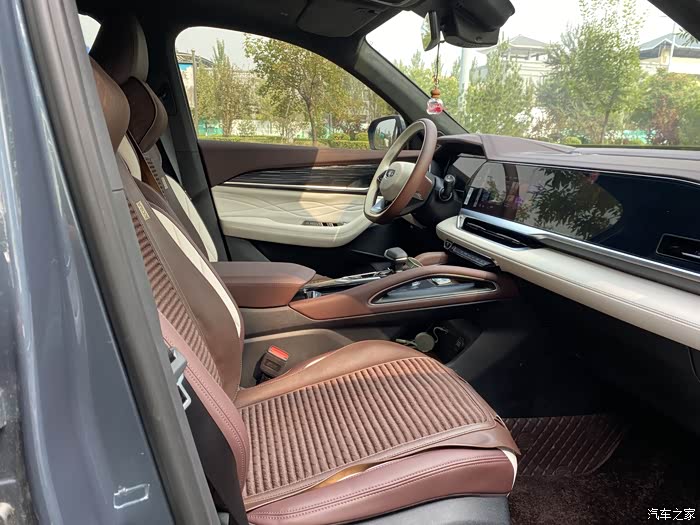 白棕色的内饰颜色,有些不耐脏,所以就铺了一个坐垫。