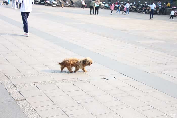 走到广场,看到一只非常可爱的小狗,看样子是在找主人吧