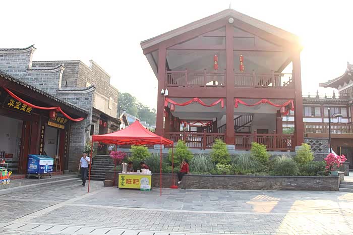 咦,一个大戏台,前面走过一个古装美女,