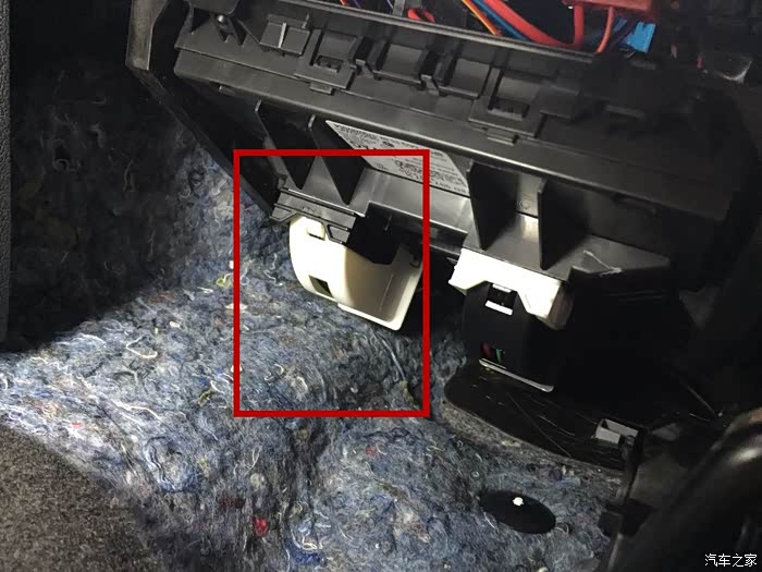 这个盒子的位置在左脚踏板的靠里靠上的位置