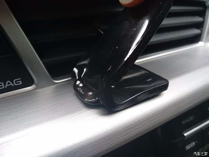 把爱人手机放去,牢牢的还不错,看样子没有大的颠簸应该不会掉下来,但是,下面是重点:很多车子这一块都是安全气囊(博越气囊在上面),你们想过没有,万一发生碰撞,这个手机就会随着气囊而射出,就像一块搬砖对你喷射而出,这对于行车安全影响相当大!!!