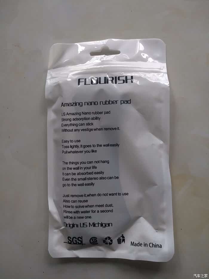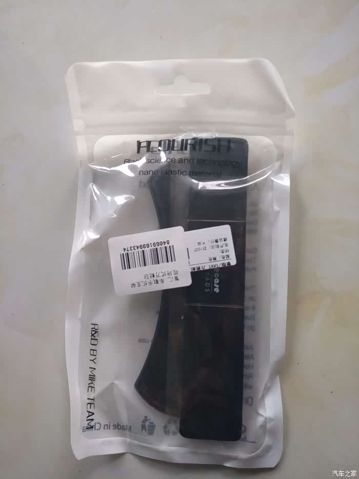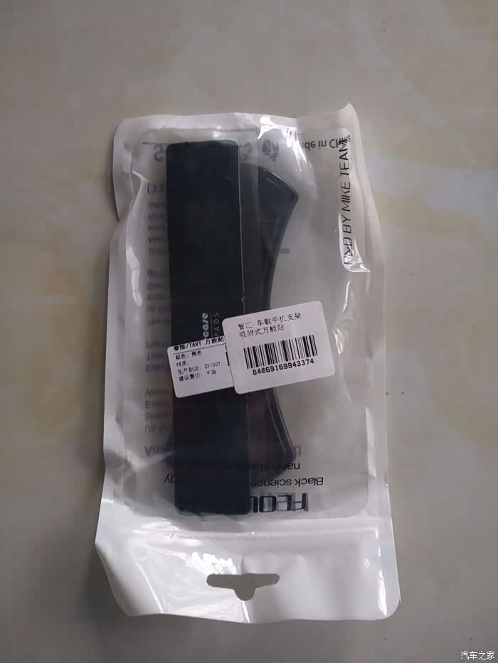 拿出来了,塑料的袋子里装着产品,上面贴了两张标签,一张标签上标注为方便贴,建议零售价38元;另一张居然写的车载手机支架吸附式万能帖。What?这个还能当手机支架使用?不过材质合格证产地等什么都没有,简直就是属于三无产品