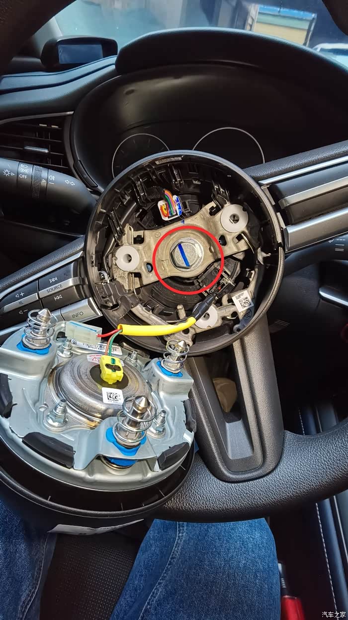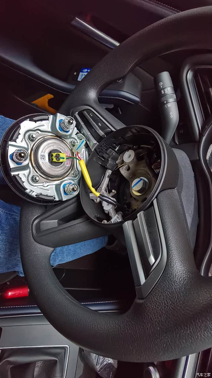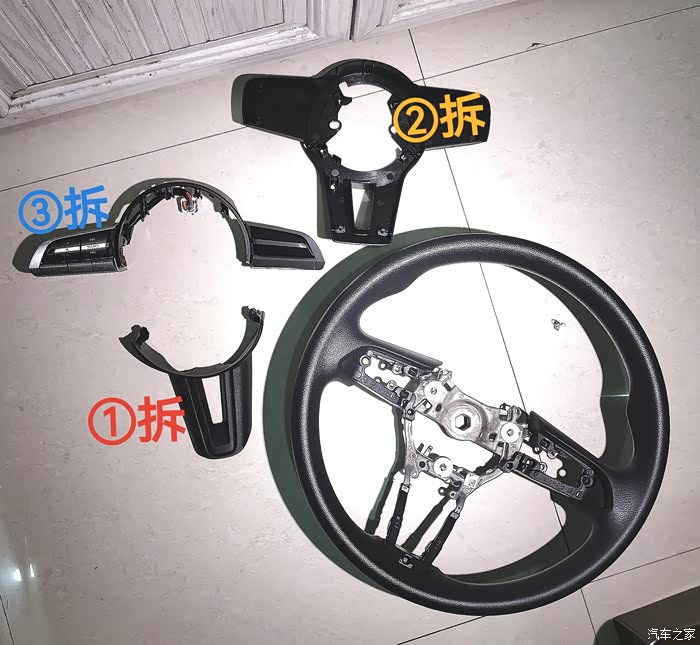 拆方向盘:三幅方向盘下各有一个洞,用平口螺丝刀顶里面那颗钢丝,弹出气囊