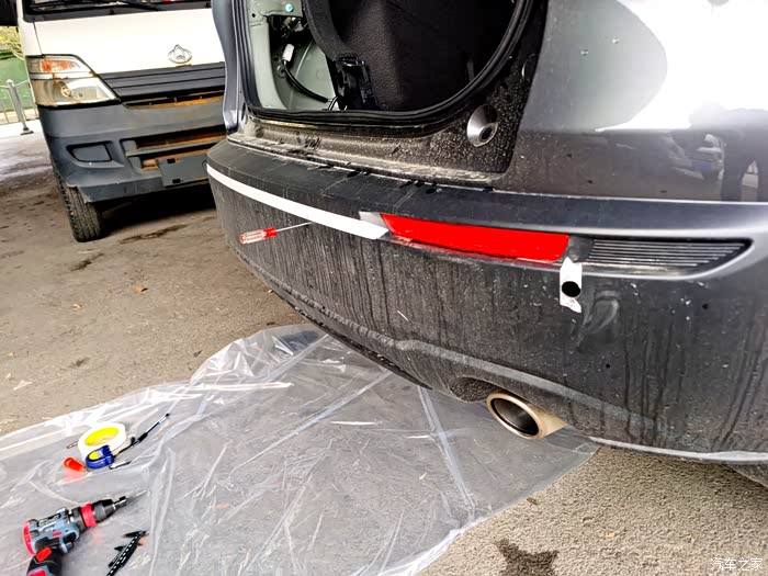 后车杠内检查 ,探头位置确定一下可以不拆杠安装 ,省事了