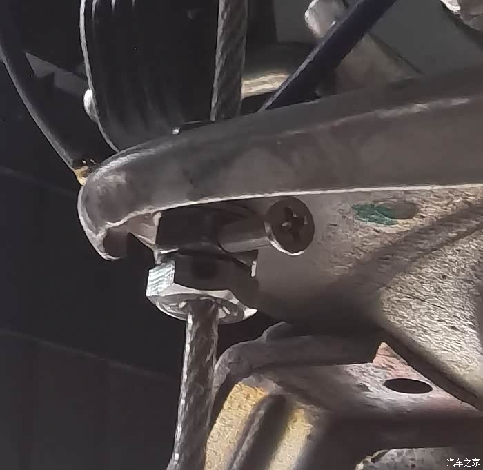 车底排气管有合适的眼位固定大螺杆,小螺杆固定钢丝绳,调节长短很方便