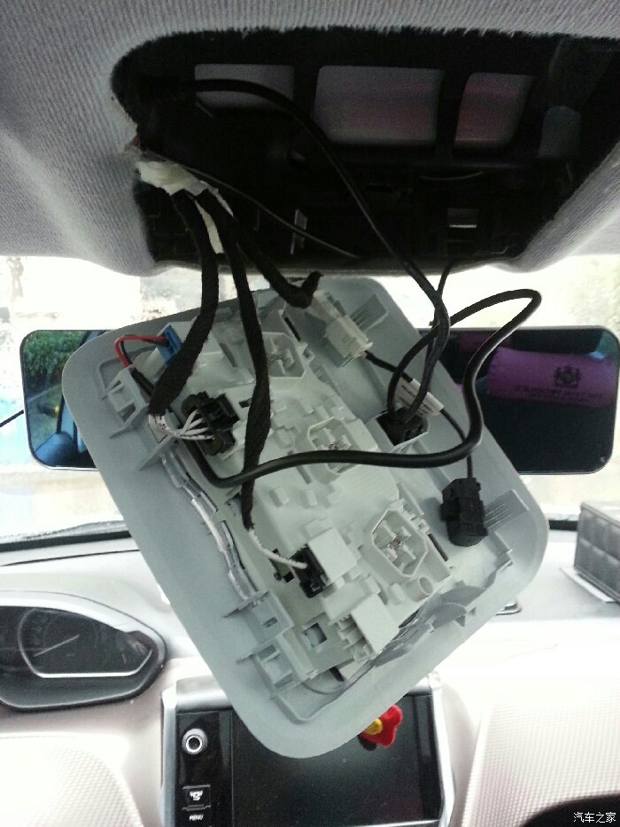 最近买了个后视镜行车记录仪,安装完成后,一直有一根电源线拖在眼前晃来晃去,看着心烦,看了论坛很多帖子教程改阅读灯取电,感觉看着顺眼,今天正好空闲,买了跟减压线,开始改阅读取电,根据教程10分钟就搞定了,现在舒服多了
