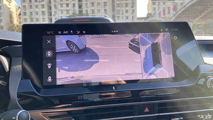 360的倒车影像特别好,图像清晰,色彩亮丽。下面是分别从前、后、左、右四个方向看到的影像。