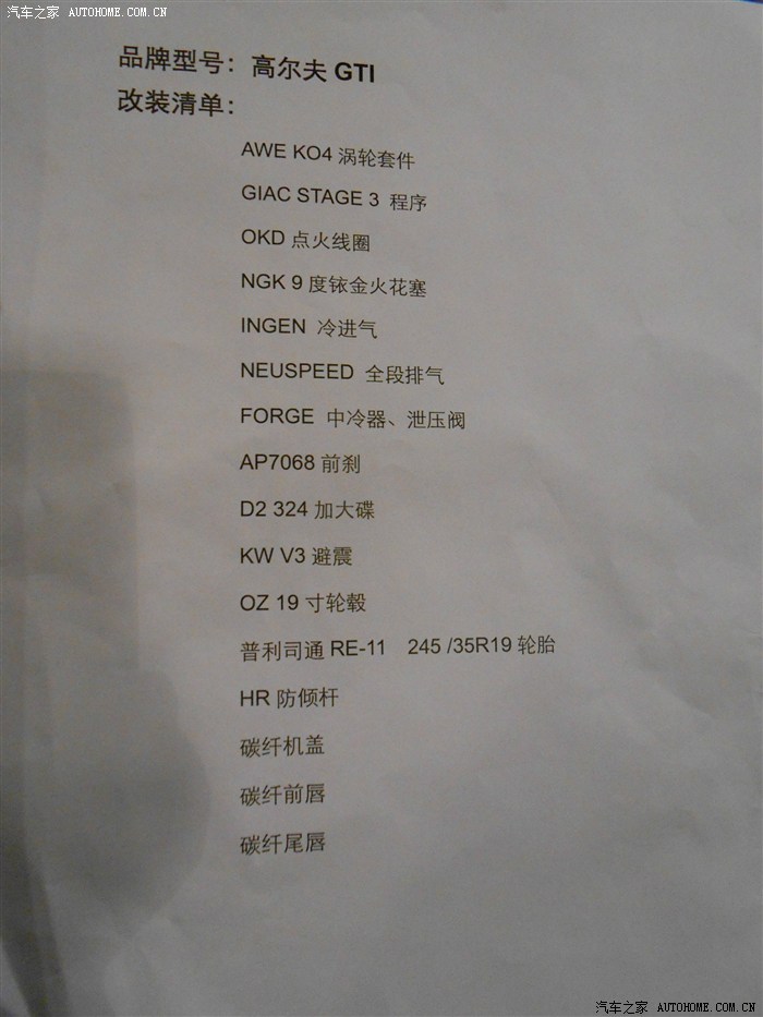 改装清单,车主(照片中出现的美女)说改装花了8万多。。。。