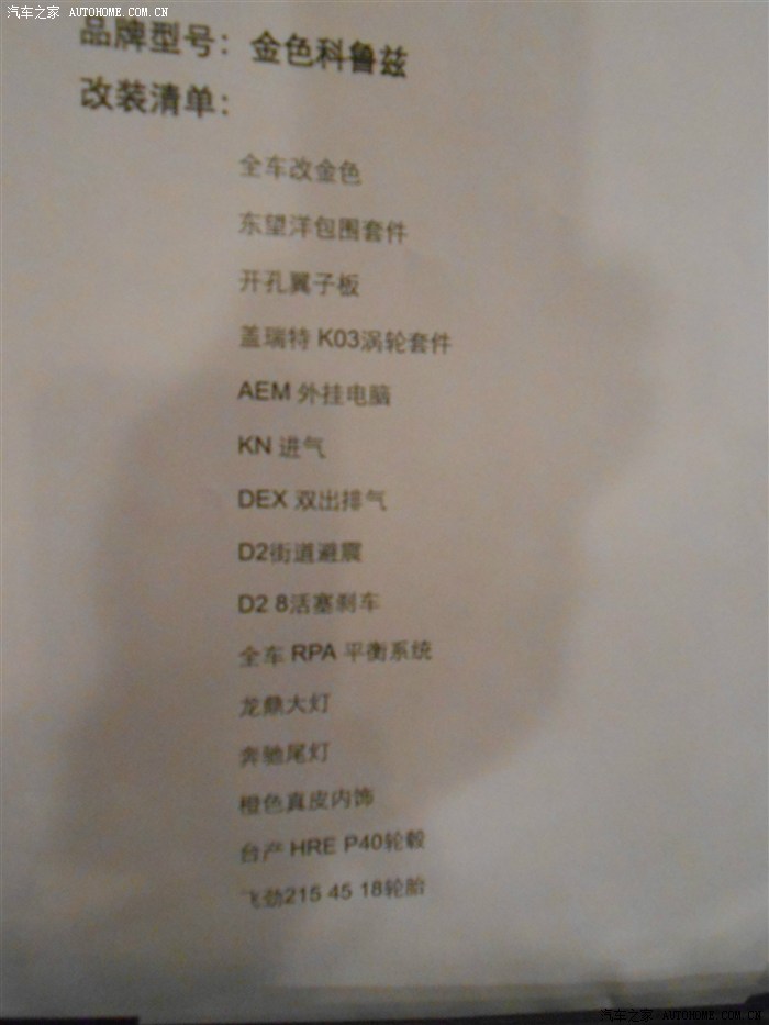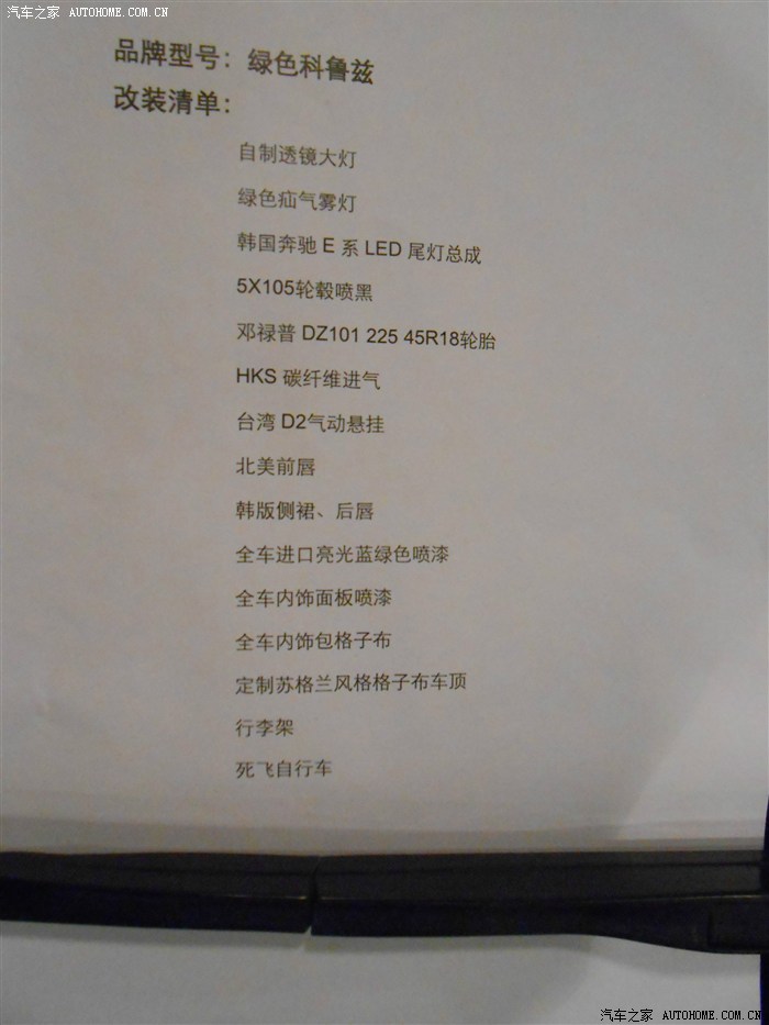 附上小蓝的改装清单,原来官方颜色认为这是绿的,难道我是色盲啊