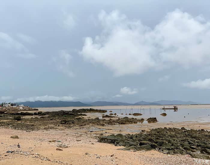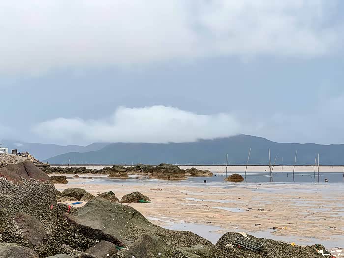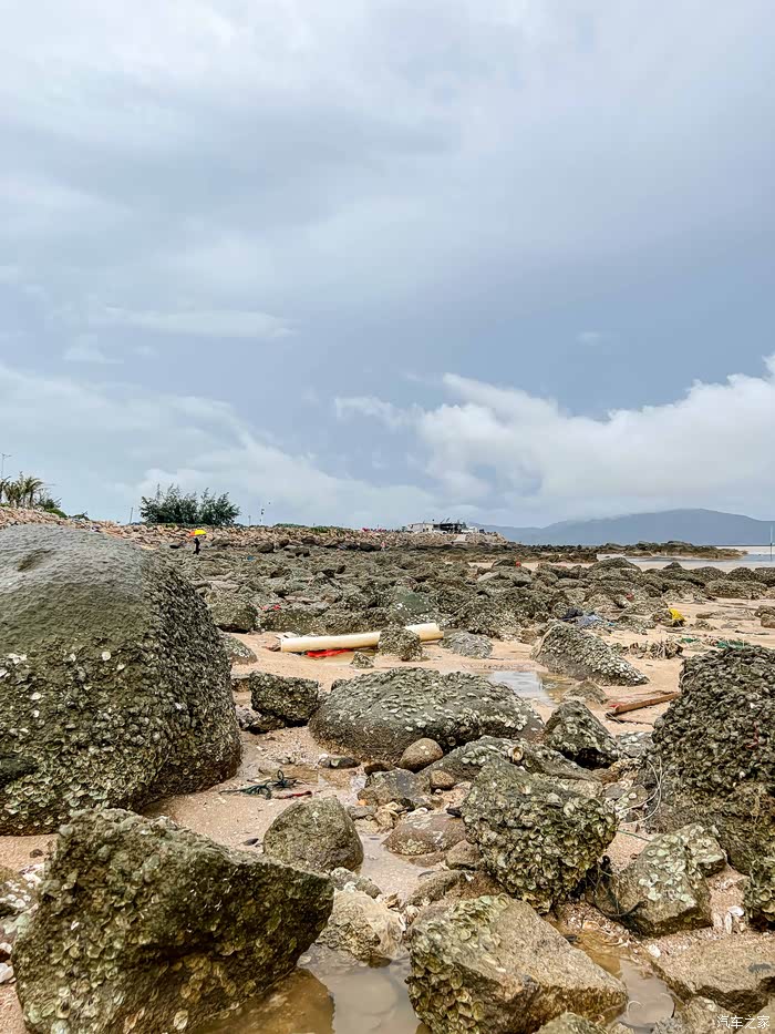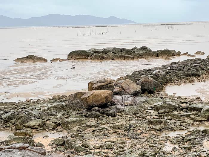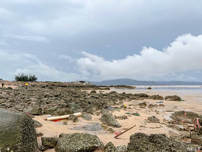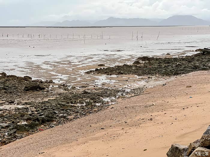于是等到了大退潮的日子,天气不似预期,但赶海不能错过,还是去碰碰运气吧,冒着大雨也出发。之前做了一些攻略,中山出发两小时到达的,就只能台山那边了,有看到过青山咀也是有点海货收获的,所以计划去那边探探路。