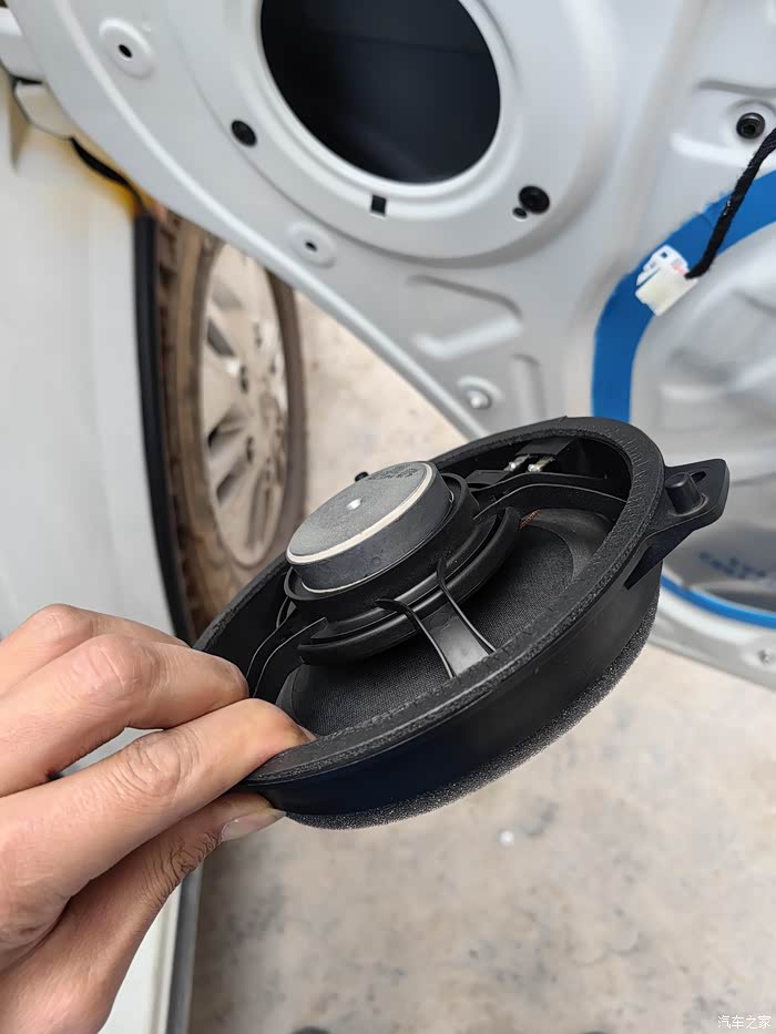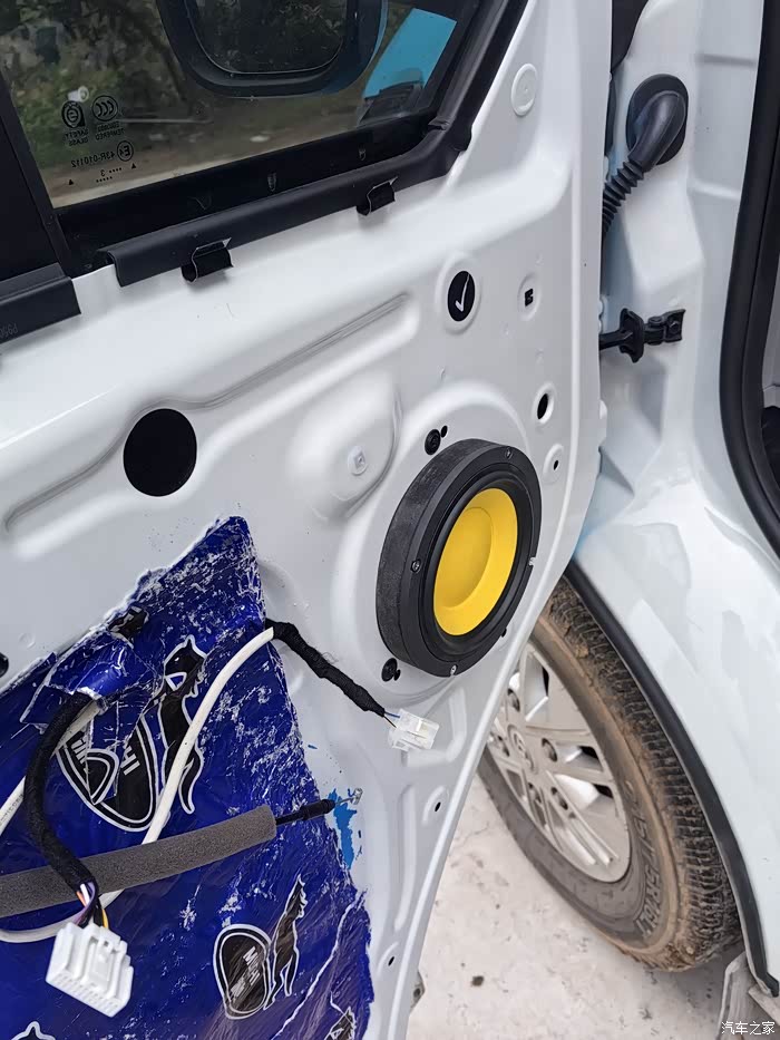 经过一下午的折腾,低音喇叭安装完成,装上车门饰板,随便放了一首歌,效果的确好了不少。已经可以和装有10寸低音炮的系统一较高下,低音量感足而不乱!