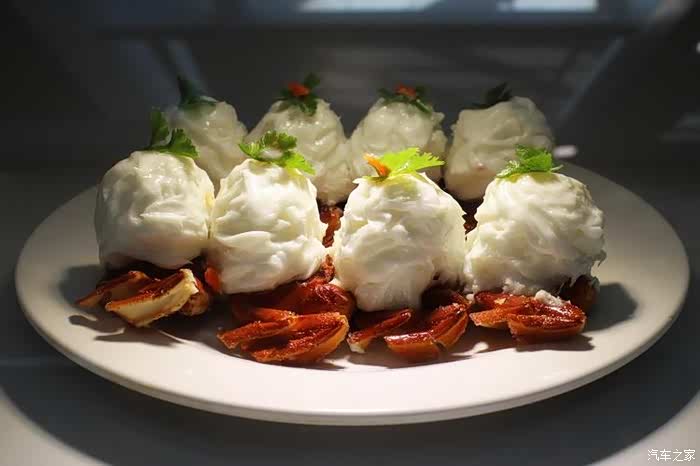 蟹宴里有一道雪花蟹斗,传说是元代画家倪云林所创,用蟹肉和蜜鸡蛋蒸出。现代版的雪花蟹斗,经过苏州厨师的改造,用蟹壳做容器,里面装上清炒蟹粉,上面铺着雪花状的蛋白,撒些火腿细末,不仅好看,而且可口。这倒又是苏州菜的另一特征,很多菜和文人传说有关。