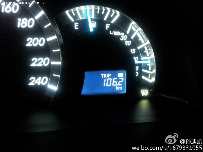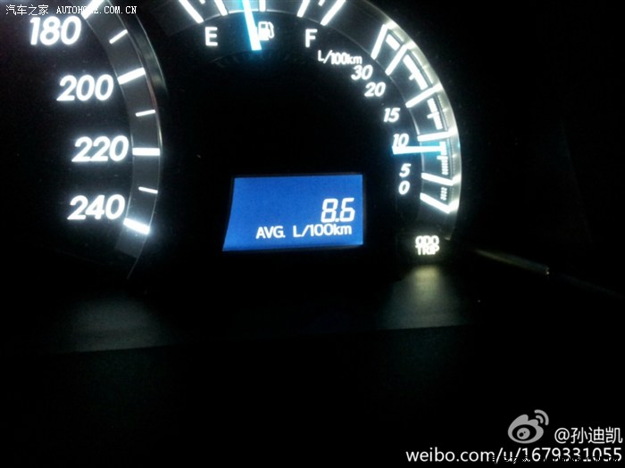 3、省油 车子还很新,开了四百多公里而已,上周末加了一次油,到昨天开了一百多公里,油耗显示8.6升 我也就平时上下班开开,大概14公里路,一半市区一半郊区吧,早上开过去四十分钟到半小时,晚上回来一般二十分钟就可以了 新车子2.5的排量这个油耗我很满意了 我平时开车自认为很温柔的,轻轻油门加速,看到红灯、下坡就可以松油门滑行了