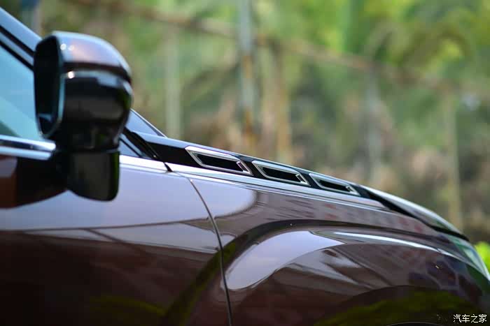 车身侧面腰线使得冠道的肌肉感饱满,再加上引擎盖上的散热装饰条,让整个车身侧面迸发力量感。