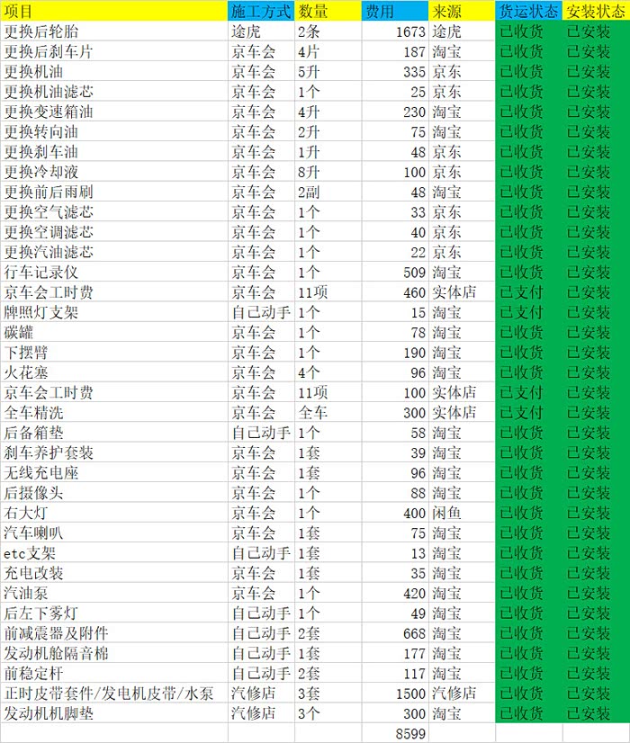 车子开了差不多一年,现在93000多公里更换的东西以及费用可以见下表。其实有些东西不是必须要换奈何我是强迫症,发现问题不整好晚上睡不好。现在该整的不该整的都整完了,最后发现车子的整体质量还是对的起这5万块钱的,作为代步工具还是合格的,如果想玩点激情或稍微激烈的驾驶还是算了,我老婆都嫌动力不够