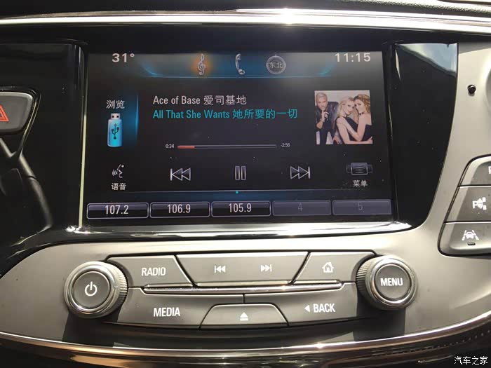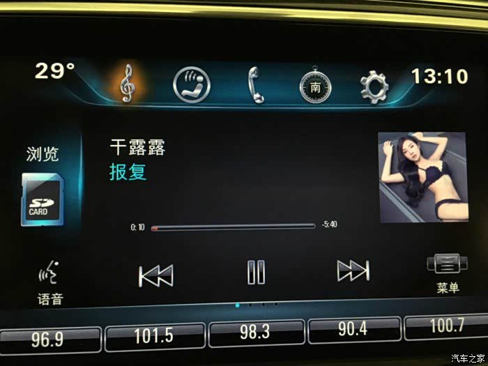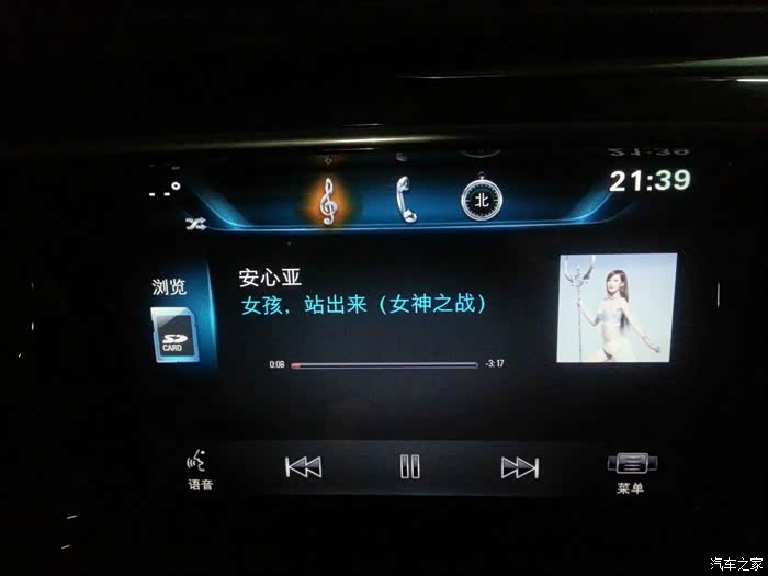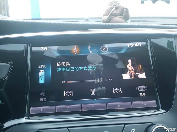 而且播放界面左上角没有像他们原厂那种能显示温度,右上角也没有时间,左下角没有语音,右下角也没有菜单,