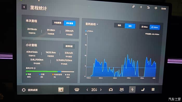 目前车辆已经提车将近一个月的时间,我平时基本就是上班通勤以及出门去吃饭会用车,偶尔也会开车去远一点的地方去探索新的美食,现在总路程将近1500km,三种驾驶模式也是交替使用,平均能耗3.8L油+3.7度电每百公里,现在夏天肯定是全程空调,可以看出07的能耗是非常的优秀的。