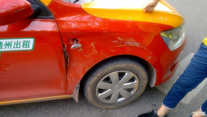 看到这车左边掉了根黑色橡皮没有?是和我车撞的
