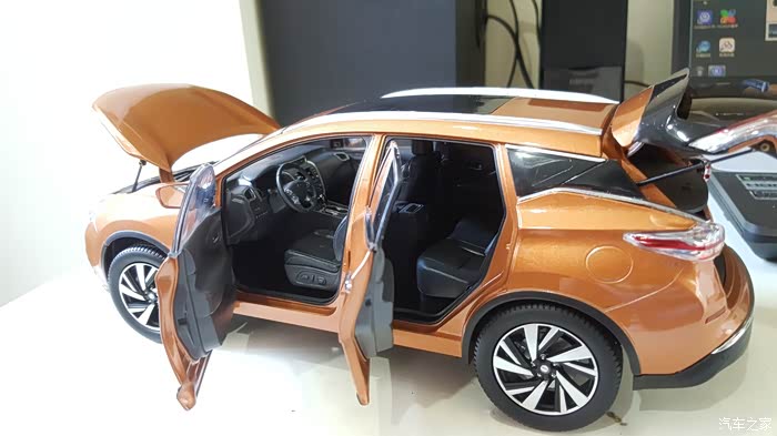 各位汽车之家青年论坛里喜欢家用SUV的车友们。不知道在你心里最想拥有的一款家用SUV是哪一款车型?如果让我推荐一款的话,我一定会推荐这款来自日产的经典楼兰。之所以推荐它,最主要的原因就在于经过更新换代之后的楼兰变得更加时尚。动感了。而且价格也从曾经的遥不可及变得异常亲民。虽然这款楼兰已经失去了曾经应该有的豪华感。变的平民化了很多,但是无论在外观设计,做工用料以及动力匹配上,相比较同级别的其他车型来说还是高出了很大一部分。拥有更好的做工。更好的动力匹配。更加豪华的驾驶以及乘坐感。正因为以上的种种优点,让我第一时间拥有了这台楼兰汽车模型。通过细细观察,这款汽车模型完美刻画了楼兰真车应该有的模样。而且颜色搭配还运用了更加靓丽的色彩。绝对是值得您收藏的一款汽车模型。