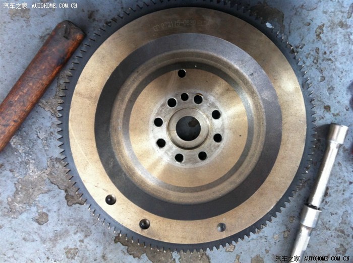 有明显磨损的旧飞轮,这齿轮已经有很严重的磨损,而且很不规则有三分之一的齿轮磨损特别严重!