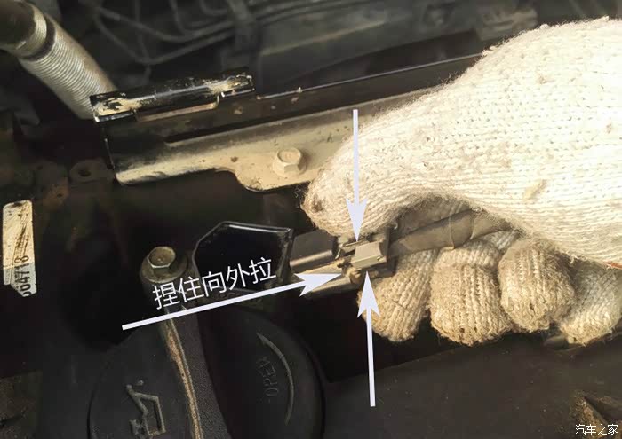 发动机罩,由一面插入铁棍,用力朝一侧打开,没关系不会坏。