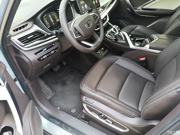 内饰:内饰可以说是最满意的点之一了,首先整体的颜色就非常喜欢,有一种成熟的感觉。整体中控台看起来也非常高档,尤其是电子挡杆,看起来更是档次十足。内饰大部分都是采用的软材料,线条看起来十分匀称,细节上的处理也非常棒。并且棕色的颜色看起来也十分舒服。还有72色的氛围灯,可以调整自己喜欢的颜色。新车时候异味只有一点点,当时订车之后还特意在网上购买了竹炭包,还有几个都没有用到。