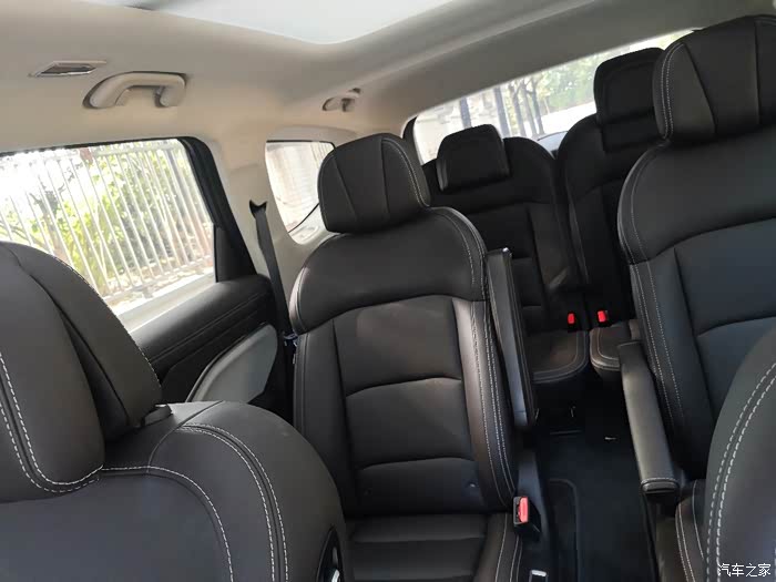 空间够用:对于嘉际的空间还是很满意的,比五座车强太多了。我一般都是在驾驶位置,头部空间能有一拳还多。腿部的空间也非常充足,像我是178的身高,坐在后排的话,腿部空间能有一拳还多,第三排很少坐人,就干脆给倒了,啥时候坐人的时候在给拉起来。老爸身材比较胖,现在就喜欢坐在第二排,空间大,并且座椅还舒服。并且还有老板键。