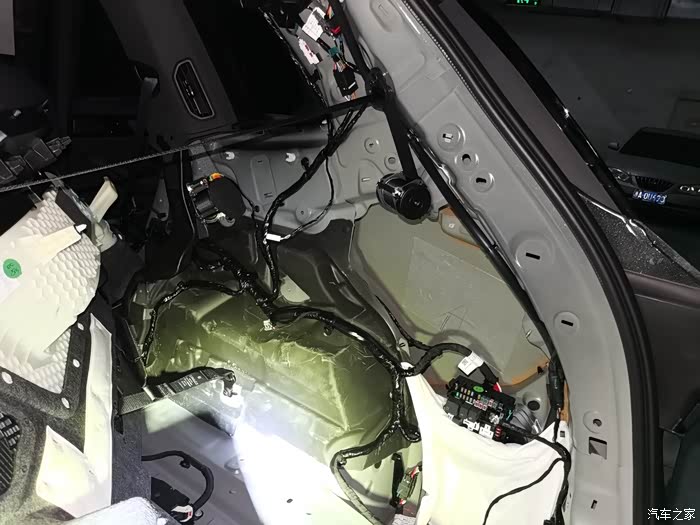 这是右侧的bose音响喇叭,覆盖了吸音棉,这个位置是个蛮大的空腔结构,所以尽可能把白色隔音棉放到位。左侧的内饰板我没有拆开,只是手够的到位置贴了止震板