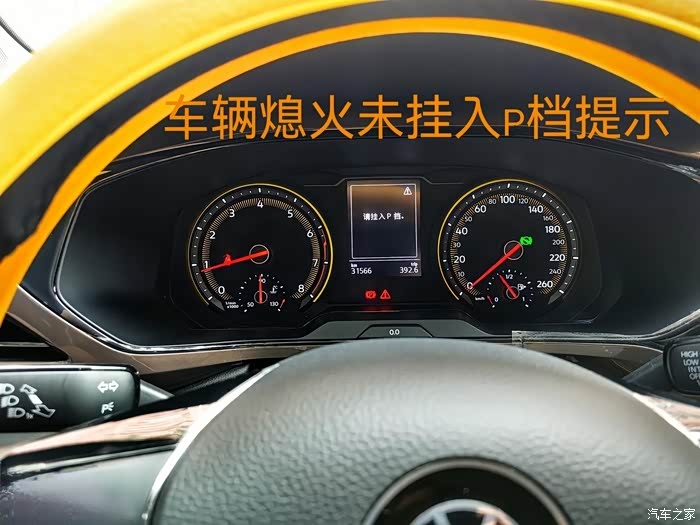 ③停车,熄火手刹未拉起P档没归位提示,这样可以防止停车后发生溜车事故。