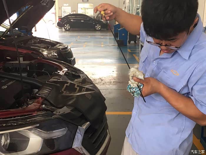 加完机油,小伙子让我看了一下机油标尺,4L足够
