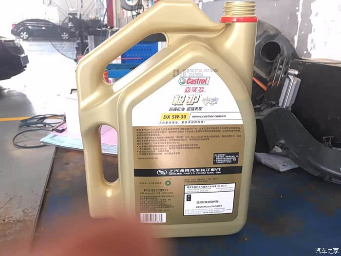 此次更换的是嘉实多极护机油,听说售价是458的,我问了小伙,这么大的车,一桶够吗,我怎么听说有用5L的!“大排量的车才用5L的,探界者是1.5T,4L没问题,呆会给你看油尺你就放心了”,真假,只会看看!