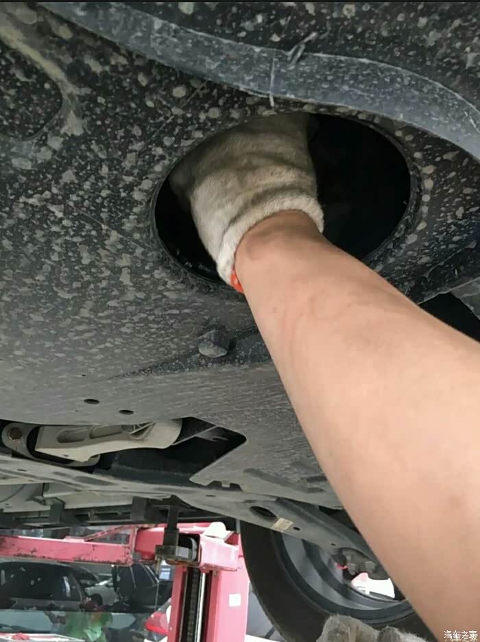 开始放机油,机油黑很黑。在这提示各位车友一定要按时做保养换机油。时间长了对车不好。影响车的使用寿命。