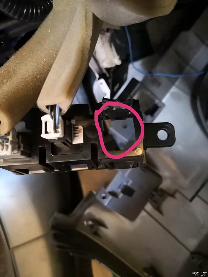 把下面板镙丝拆掉后就可以整个下面板拆下来,安装位置还有两颗镙丝要拆,图片是已经装好胎压监测的,拆的时候忘拍照了