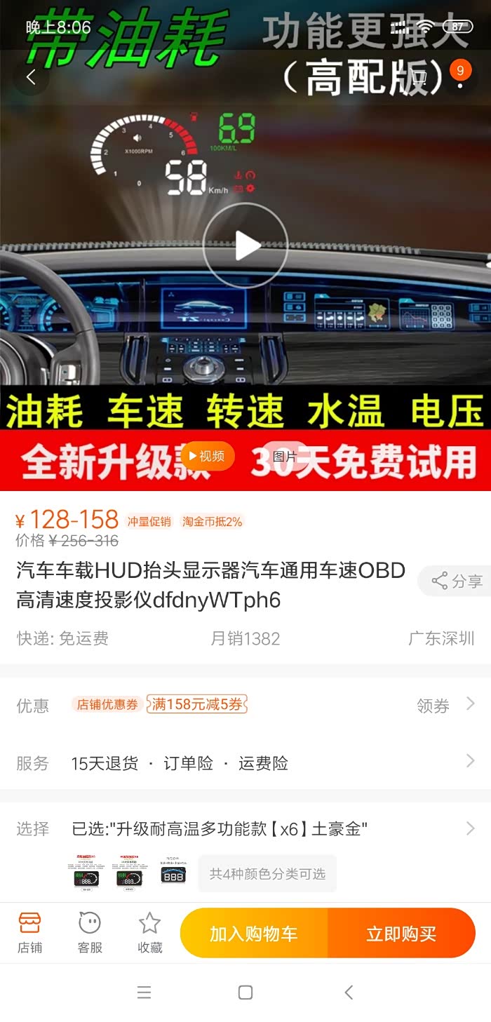 淘宝买的,抬头显示158块,安装很简单,今天装上之后,终于有转速表了,还有实时油耗。因为小卡坐姿比较高,仪表台又在比较低 加装抬头显示之后晚上开车,看前面的时候不用低头看速度表了,很方便安全 而且有了实时油耗之后,发现耗油最厉害的是一档,起步的时候。只要是一档起步,油耗必定19.9L/100km 起步之后马上转到二档,油耗稍微降一点,市区开也是10 -15L,现在我只要市区开20几码,我都用三档开,这样油耗都在7~8左右。终于发现为啥我开小卡平均油耗都在11个以上啊,我的店在小巷子里,所以用一档二档开比较多。我的店要在外面大马路上的话 我估计平均油耗能降两个,9L/100KM 还有每次开完一段路熄火之后都会有这段路开完之后的平均油耗。 目前还没有开过时速80公里以上,等我试了之后,再来说,这个码数准不准