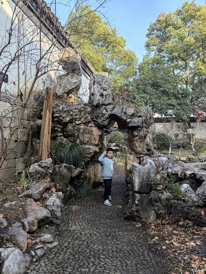 我们带着小朋友们游览了语文书上学习过的三味书屋和百草园,三味书屋是鲁迅少年时的私塾,位于绍兴鲁迅故里。书屋正中挂着“三味书屋”匾额与孔子画像,鲁迅曾在此跟随寿镜吾先生读书。他的座位在东北角,桌上还留有当年刻下的“早”字,警示自己不再迟到。