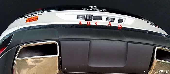 # 车牌下方是自主紧急制动雷达,配合雨感那边的摄像头,前方有行人或汽车小于安全距离,系统会根据驾驶员的刹车反应快慢和刹车力度大小,启动主动刹车,普通情况下会提前预警,非常棒的安全辅助功能了。