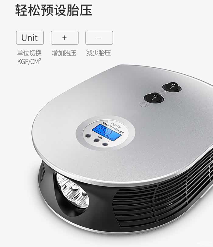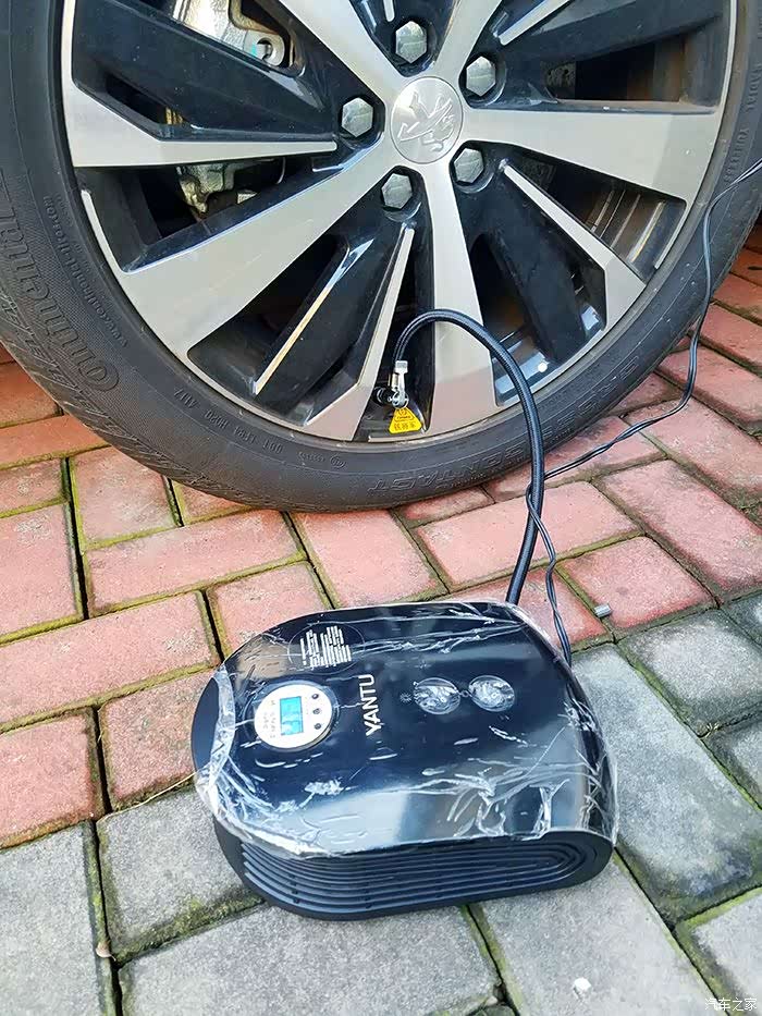 # 买了一个点烟器打气泵,可以预设数值,打满即停。