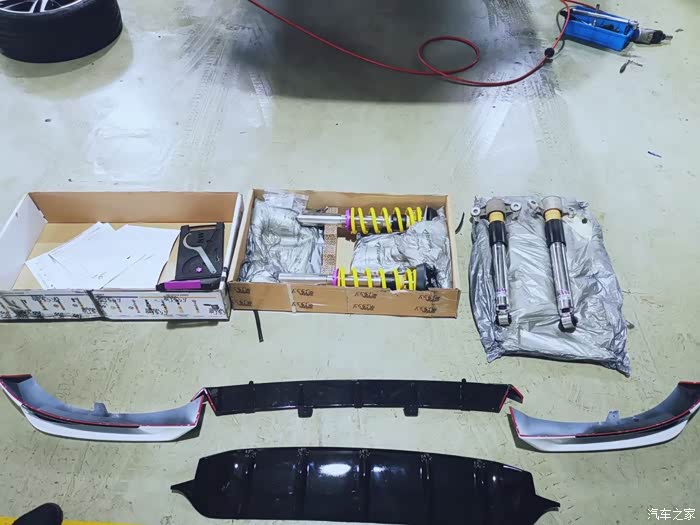 俗话说百改降为先,再还没提车的时候就已经定了ERST的短簧和顶吧,于是提车的第二天就开去换短簧。换完前轮勉强一指,后轮一指多一点。换完和原车比就是路感更加清晰,过弯侧倾少了很多,而且回弹也好一些,过减速带明显感觉多余的抖动少了一些,但是由于还是原厂阻尼所以还是略显拖泥带水。