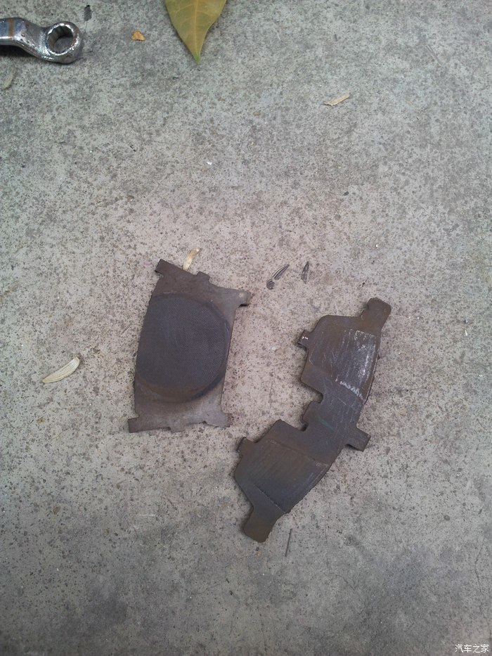 刹车皮内外对换,一定要对换刹车皮上面的两消声片,也拆出来对换一下就是图下面的两个东西,短的那一片是要装在里面,长的那一片是装在外面不能装反。