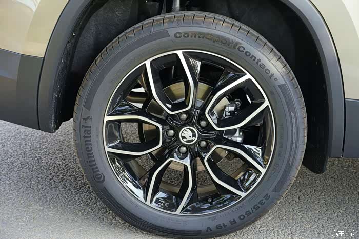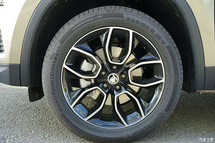原厂加装的19寸轮毂+马牌轮胎,前刹车是通风盘式的。