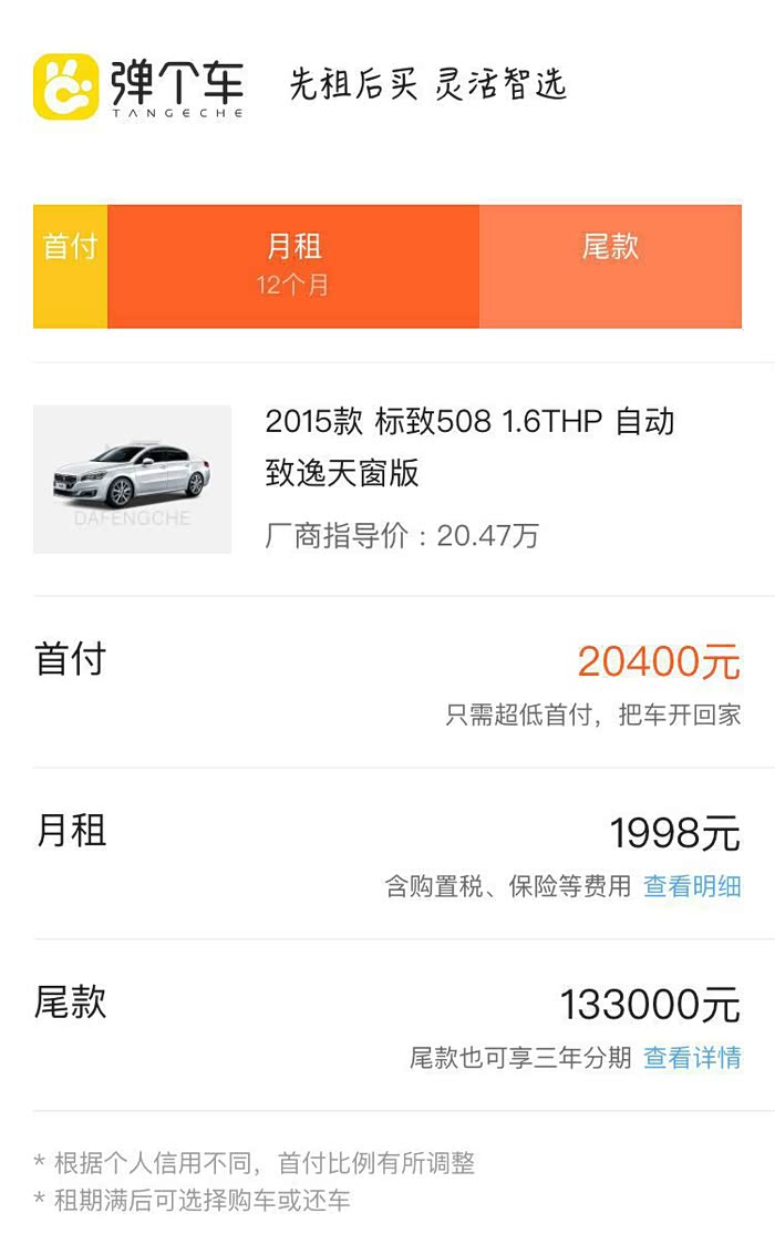 标志508 1.6T的,首付只需2.04万就可以开走,一年后可退可买可分期