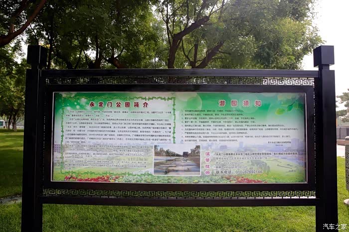 永定门公园建于2004年。为开放式带状公园。北起南纬路,南至永定门,处于天坛与先农坛之间, 属北京重要的历史文化街区,占地28.5公顷,南北长1000米,永定门城楼是中轴路绿地南线的标志和起点,公园也因此而得名。天坛和先农坛是北京中轴线两侧的重要标志性建筑,按照实际行政区划,公园自然分为崇文和宣武两个园区。公园整体风格平正大方,古朴自然。结合永定门城楼复建及文物保护进行了中轴线御道修建,在绿地的原址复建了“佑圣寺”和“观音寺”。建成后的南中轴绿地尊重延续历史文脉,保护再现古都风貌,形成了具有浓郁北京特色的文化旅游街区。