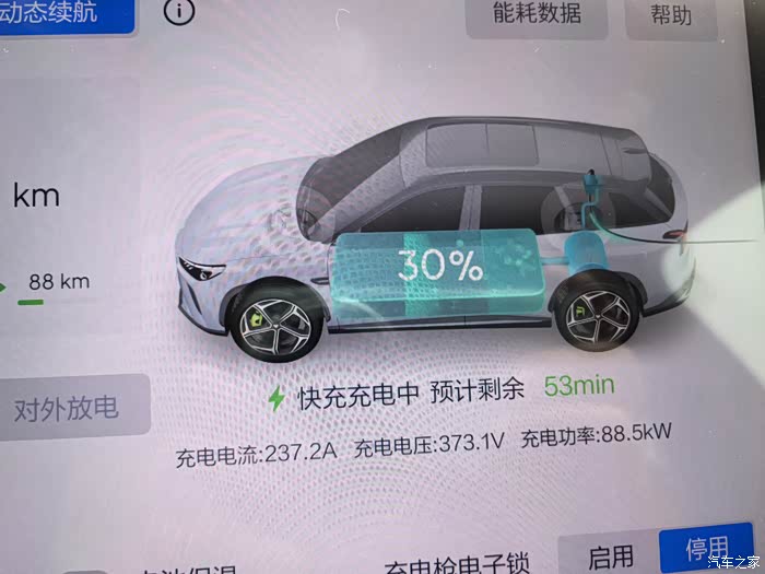 关于续航的更新,充了一次家充(慢充),发现续航很实很实,刚充满的时候显示动态续航是255,后面开着竟然越来越多,开了226公里,动态显示还有86公里,续航基本1:1,最低的电耗只有11.7,这跟哪吒v的电耗差不多了,但是不要忘了这是一台中型suv,对于这纯电续航真的太满意了。