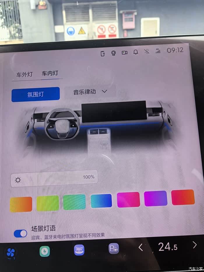 64色车内氛围灯,带音乐律动,这无疑又是一个能增加氛围感的东西,不过这氛围灯白天的亮度是不太够的,到了晚上,那氛围感一下子就上来了,
