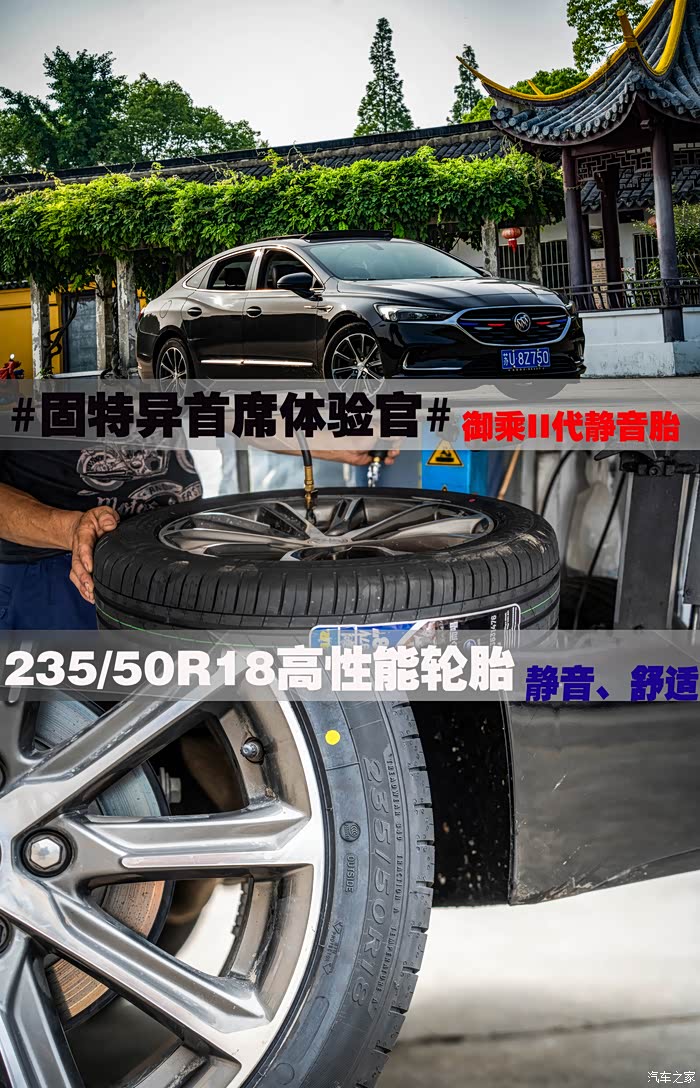 这次有幸成为固特异首席体验官,感谢汽车之家给我这次机会,也感谢固特异提高的御乘静音胎,我的车型是别克君越原车轮胎是米胖子静音胎,这款轮胎也不错缺点就是不耐磨刚刚3年过去不到5万公里的行程,轮胎消耗还是非常大,前一段时间就想更换轮胎,自己对轮胎还是有点了解,更换轮胎首选也是静音 舒适然后得耐磨,毕竟更换一次轮胎成本也是比较高,各方面也得考虑到,特别感谢固特异这次的及时雨,固特异的轮胎很多车友对这款轮胎都有一定了解,主打的就是抓地力 耐磨性还有属性,御乘系列有着 抓地力 静音 湿地防滑等特点,下面分享一下更换的这款固特异御乘II代!!