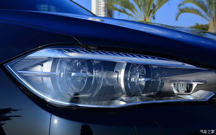 外观:最突出的当然是溜背的车顶弧线和硕大性感的屁股,这点有公论。还有就是后轮上方增加的腰线,上一代X6没有,尽管从设计上看有点刻意了,但确实传递了强壮的肌肉感和运动感。车顶行李架我不太喜欢,虽然这是SUV的标配,但我觉得既然定位为全能轿跑,去掉车顶这两条“辫子”可能会更纯粹,也更漂亮。我比较喜欢的是大灯设计,锐利的剑眉,又大又圆炯炯有神的两只眼睛,鹰目一般明锐,非常漂亮。宝马的车灯设计走了一条化圆为方的路子,过去的天使眼是纯圆的,现在半圆半方,但看上去还像圆的,最新设计改为折线,半个六边形的造型,天使眼变成“勺子眼”了,设计感更强,但是传统审美又少了一些。宝马总是这样,热衷颠覆过去引领未来。