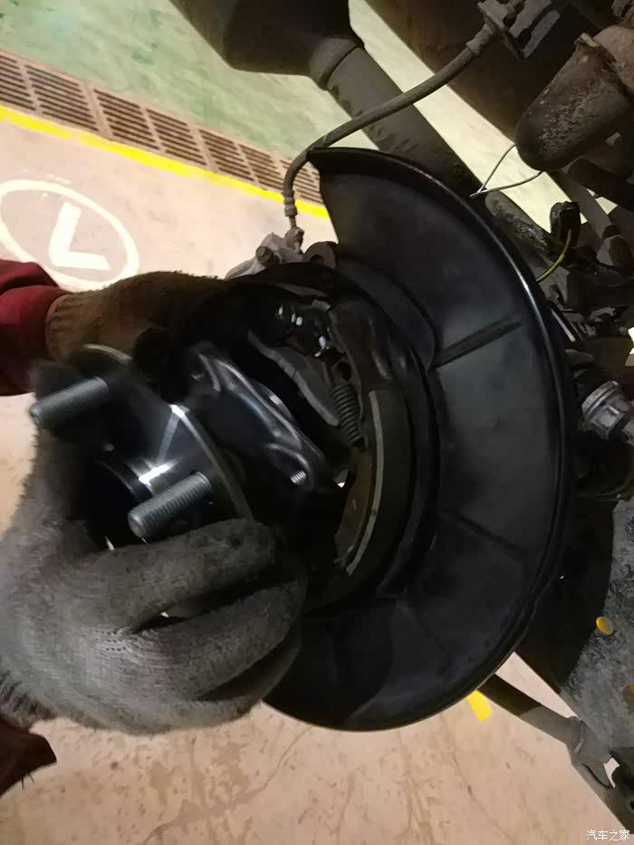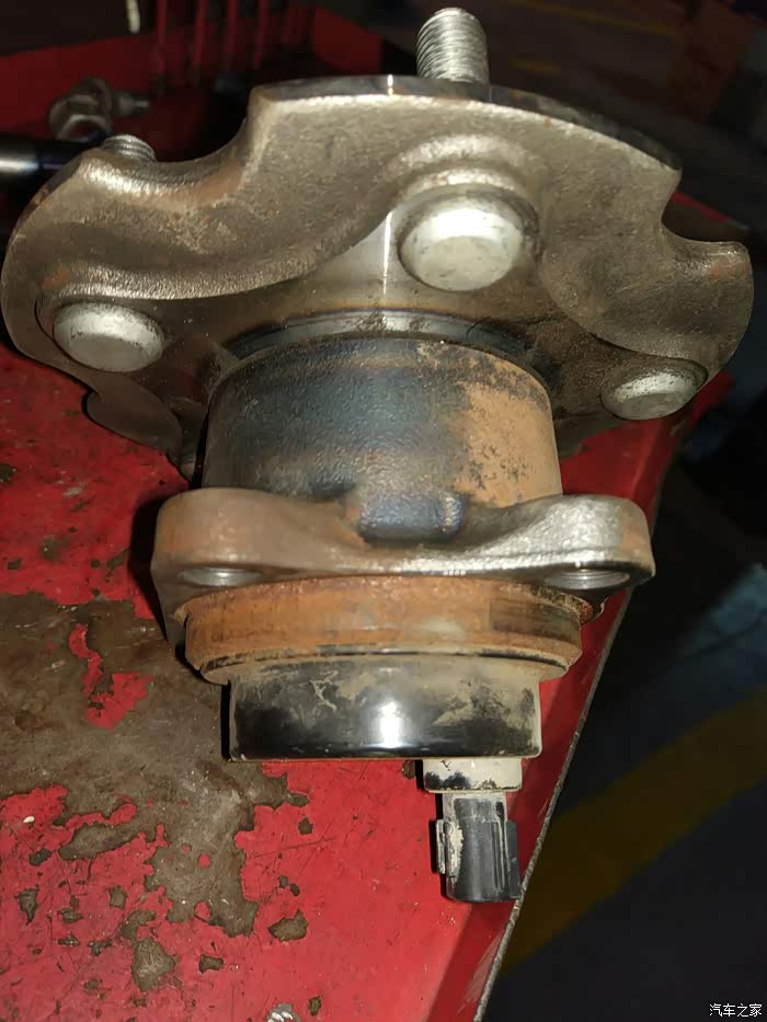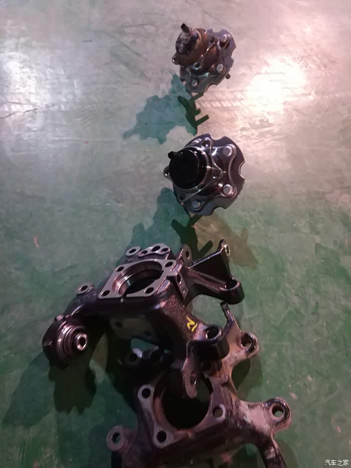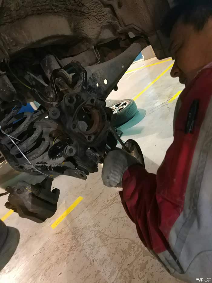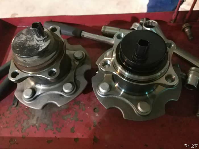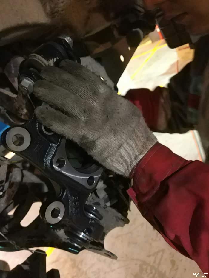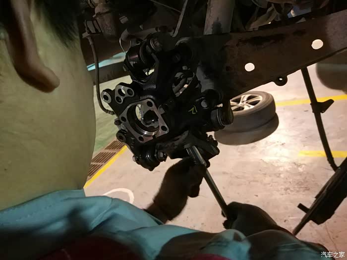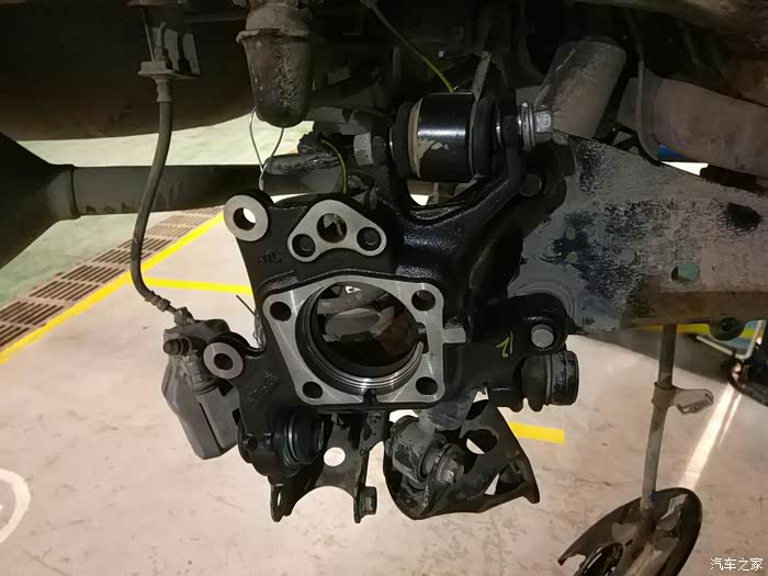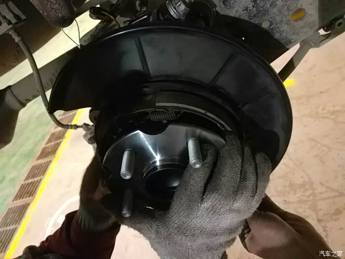 轴承拆掉,然后把固定手刹片的支架拆了,然后开始拆卸右后轮轴头。